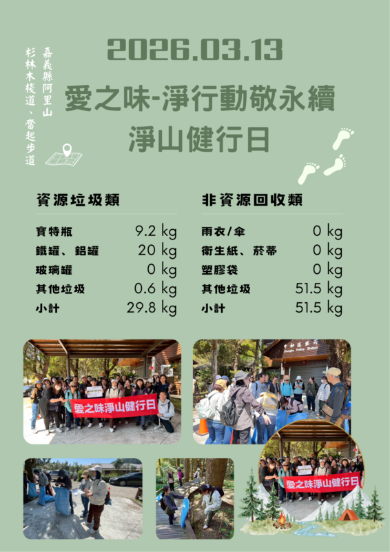 2026, 最新消息 2026年愛之味-淨行動敬永續,淨山健行日 Posted on 2026-03-132026-03-19 by 陳 碗貽 13 3 月 活動花絮 陳 碗貽 生吐司健康大進擊!愛之味純濃燕麥X嘉義耐斯王子烘焙坊限量開賣